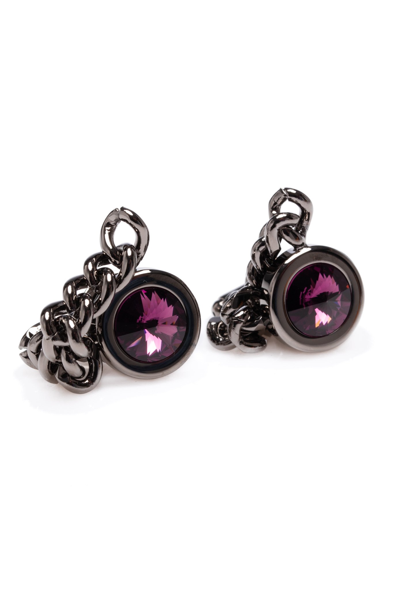 Butoni argintii cu lant, piatra naturala de culoare mov.