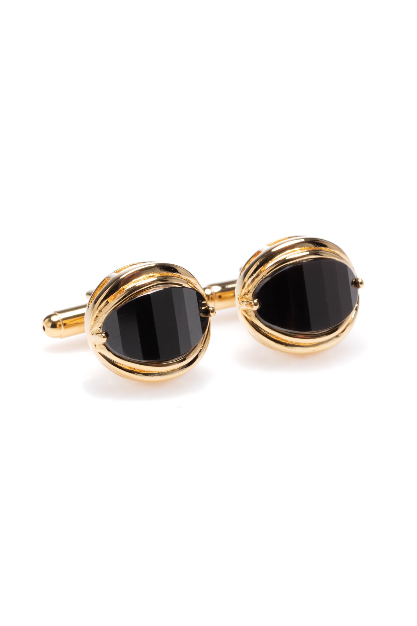 BUTONI ROTUNZI AURII CU PIATRA DE CULOARE NEAGRA