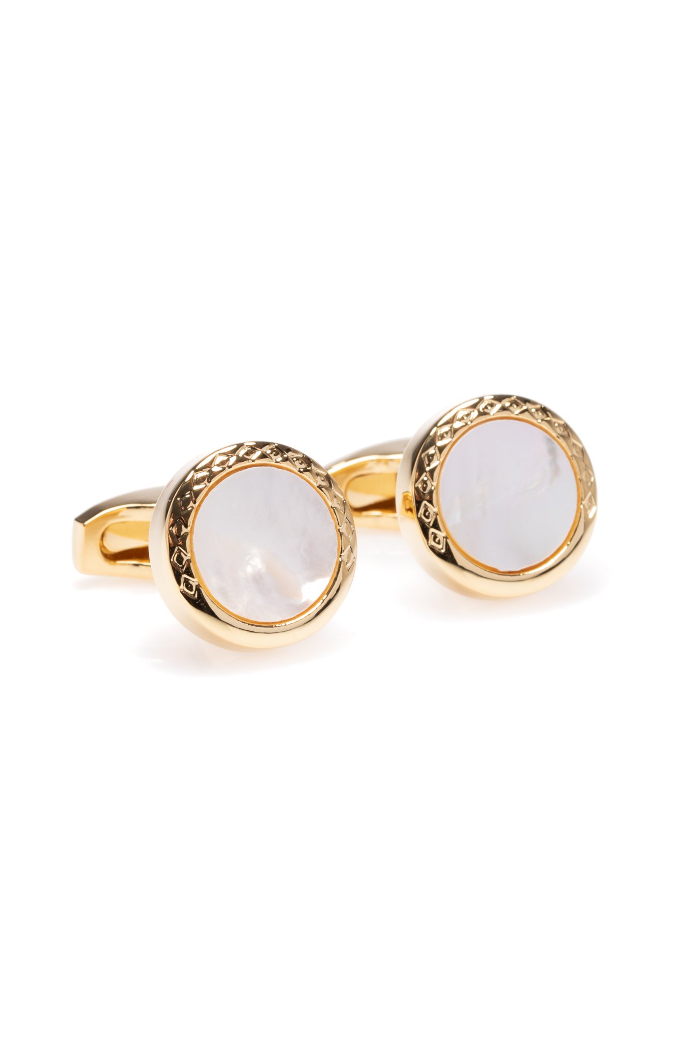 Butoni aurii , forma rotunda, piatra alba.