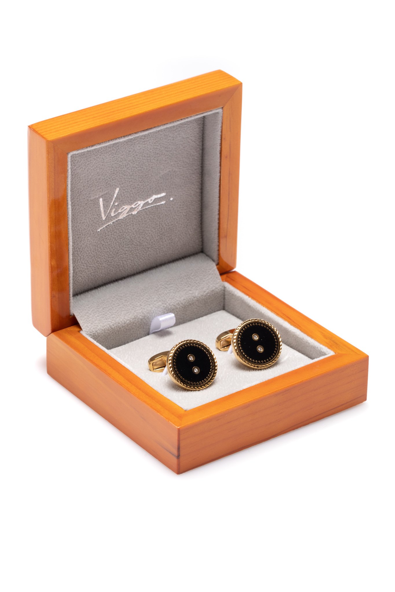 Butoni aurii cu piatra de culoare neagra.