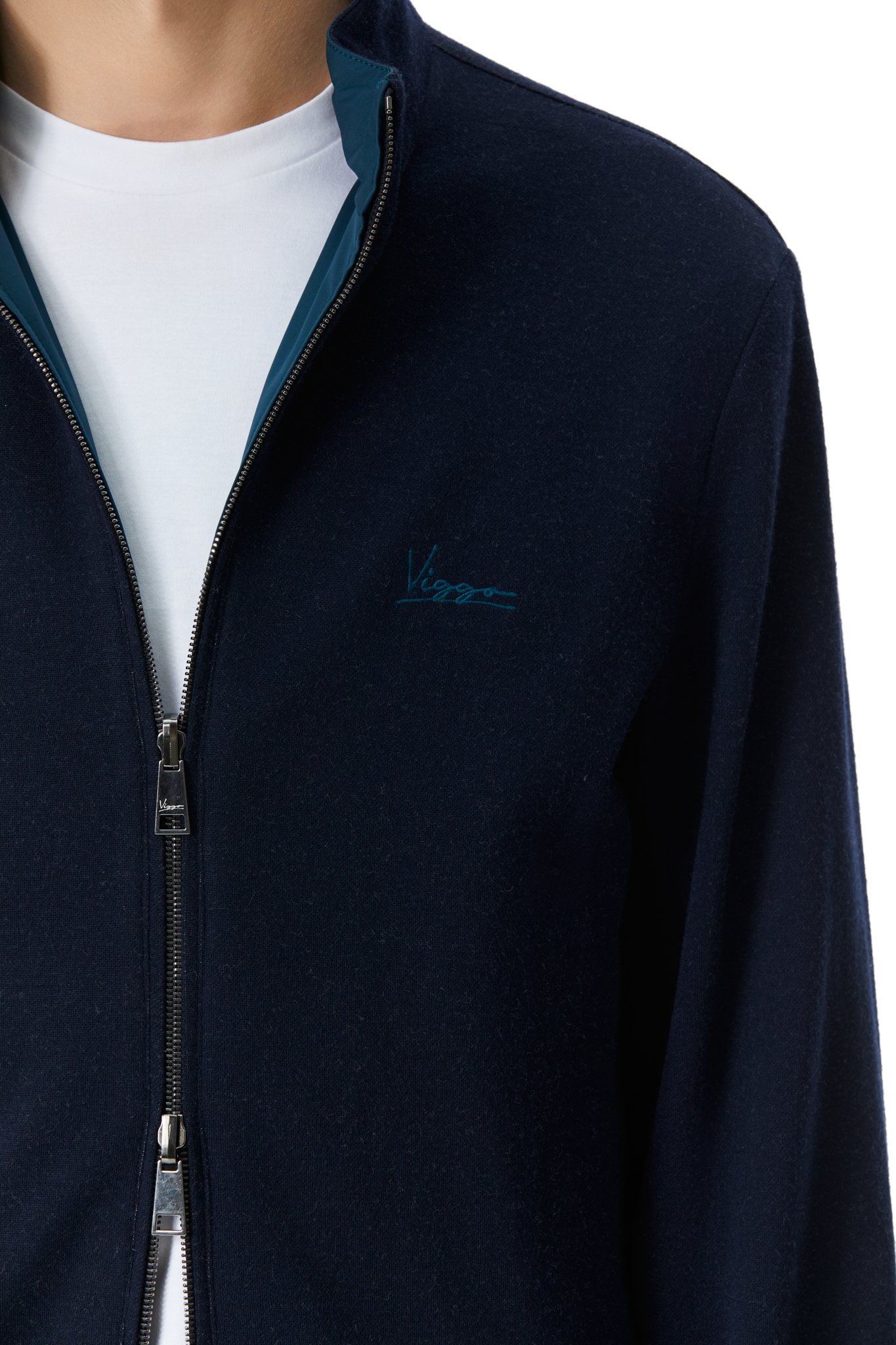 Jacheta reversibila din noua colectie Viggo imbina proprietatile materialului tehnic cu confortul oferit de lana virgina si designul functional. Extrem de usoara, este fabricata exclusiv din materiale de provenienta Italia. Partea exterioara de culoare turquoise este realizata din material tehno cu proprietati water repellent, impermeabil si fara PFC. Gluga reglabila si detasabila, fermoarul cu dublu sens si talia ajustabila o fac potrivita unor diverse conditii meteo, putand fi usor integrata si unor stiluri vestimentare diferite. Cea de-a doua parte exterioara, de culoare navy, este fabricata din 100% lana virgina, un material cu extraordinare proprietati de reglare a temperaturii.