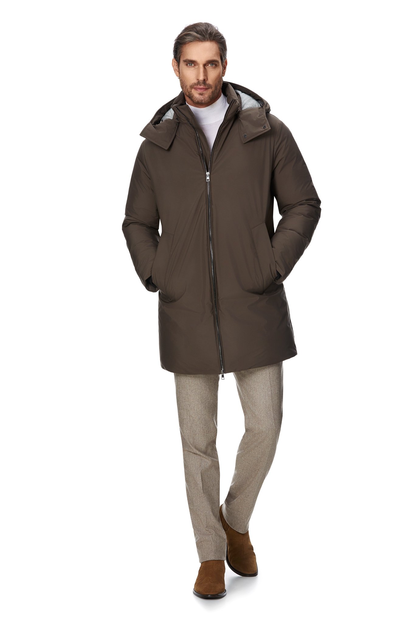 Tailoring-ul intalneste functionalitatea intr-o colectie in editie limitata ce imbina puful 100% natural cu materiale inovative precum membrana multistrat cu proprietati tehno: impermeabilitate, rezistenta la apa, respirabilitate. Compozitia din puf certificat de origine italiana, cu densitate 750 cuin, iti asigura confort termic pana la temperaturi de -20 grade.