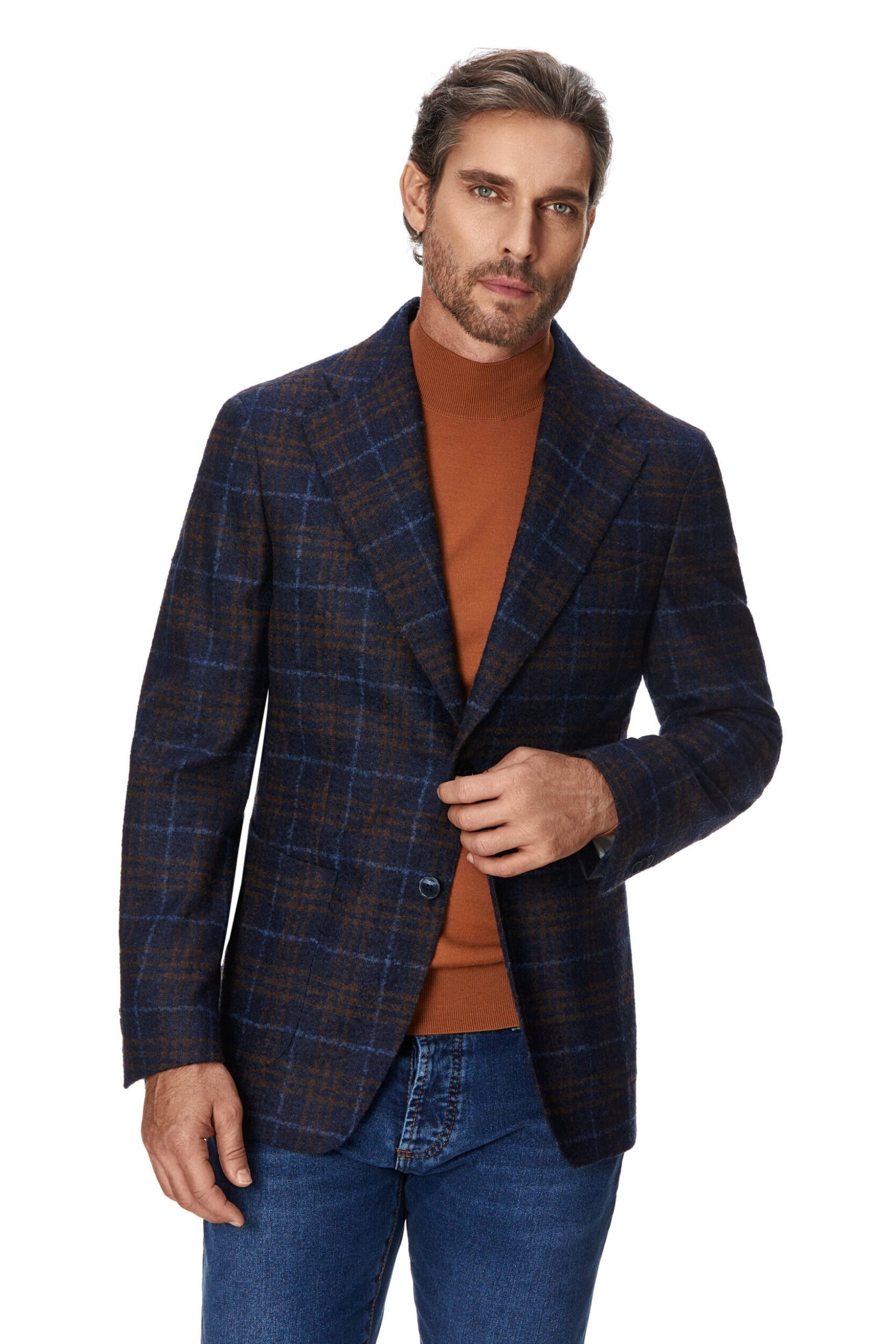 Sacou navy herringbone tesatura Vitale Barberis Canonico