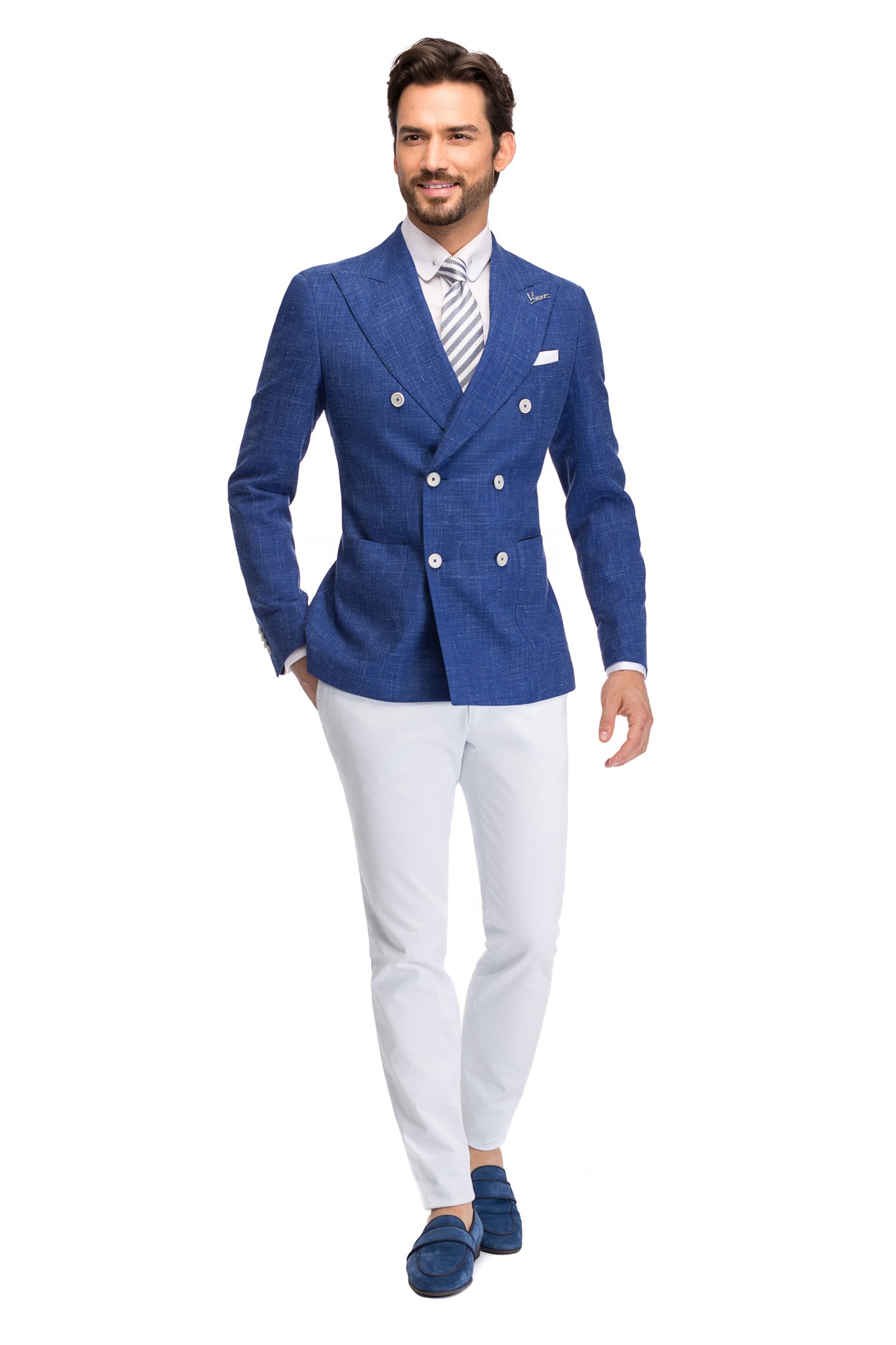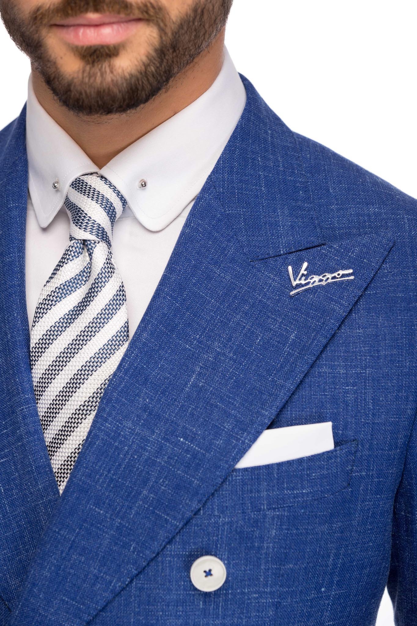 Un adevarat clasic, sacoul albastru royal la doua randuri de nasturi este o piesa elementara in garderoba. Executat semi-traditional, din tesatura de lana virgina si in Vitale Barberis Canonico, iti va transforma zilele de primavara in adevarate experiente!