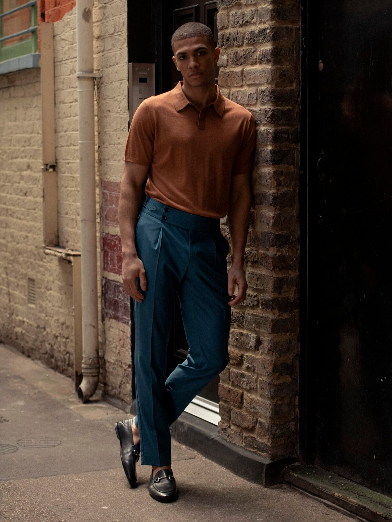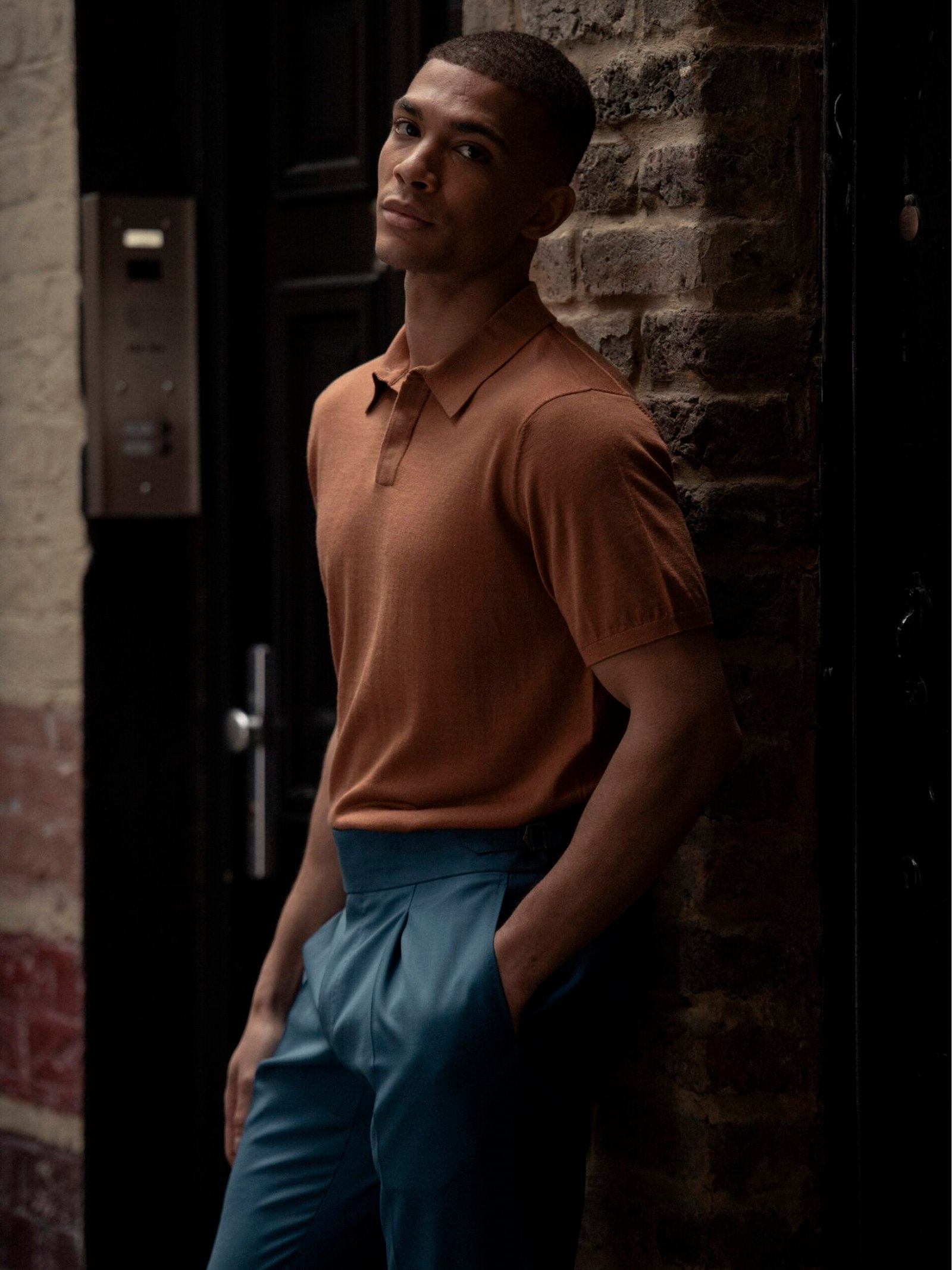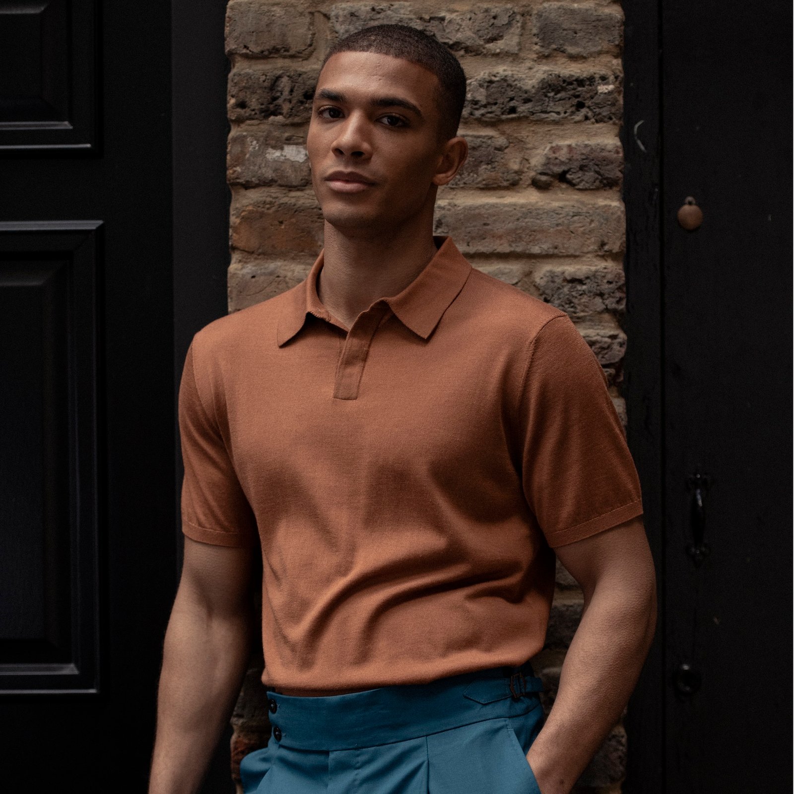 O investitie sigura, pe termen lung, este tricoul polo din lana si matase. Usor de adaptat oricarei tinute de vara, acesta prezinta, pe langa versatilitate, si avantajul confortului termic lasand pielea sa respire natural. Bifand tendinta old-school, pledam pentru asocierea cu un pantalon cu talie inalta si alura retro.