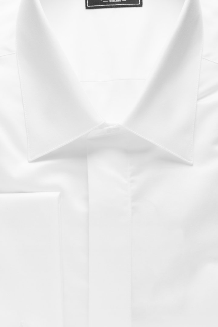 Albă simplă, nasturi ascunși, manșete de butoni, guler cravată